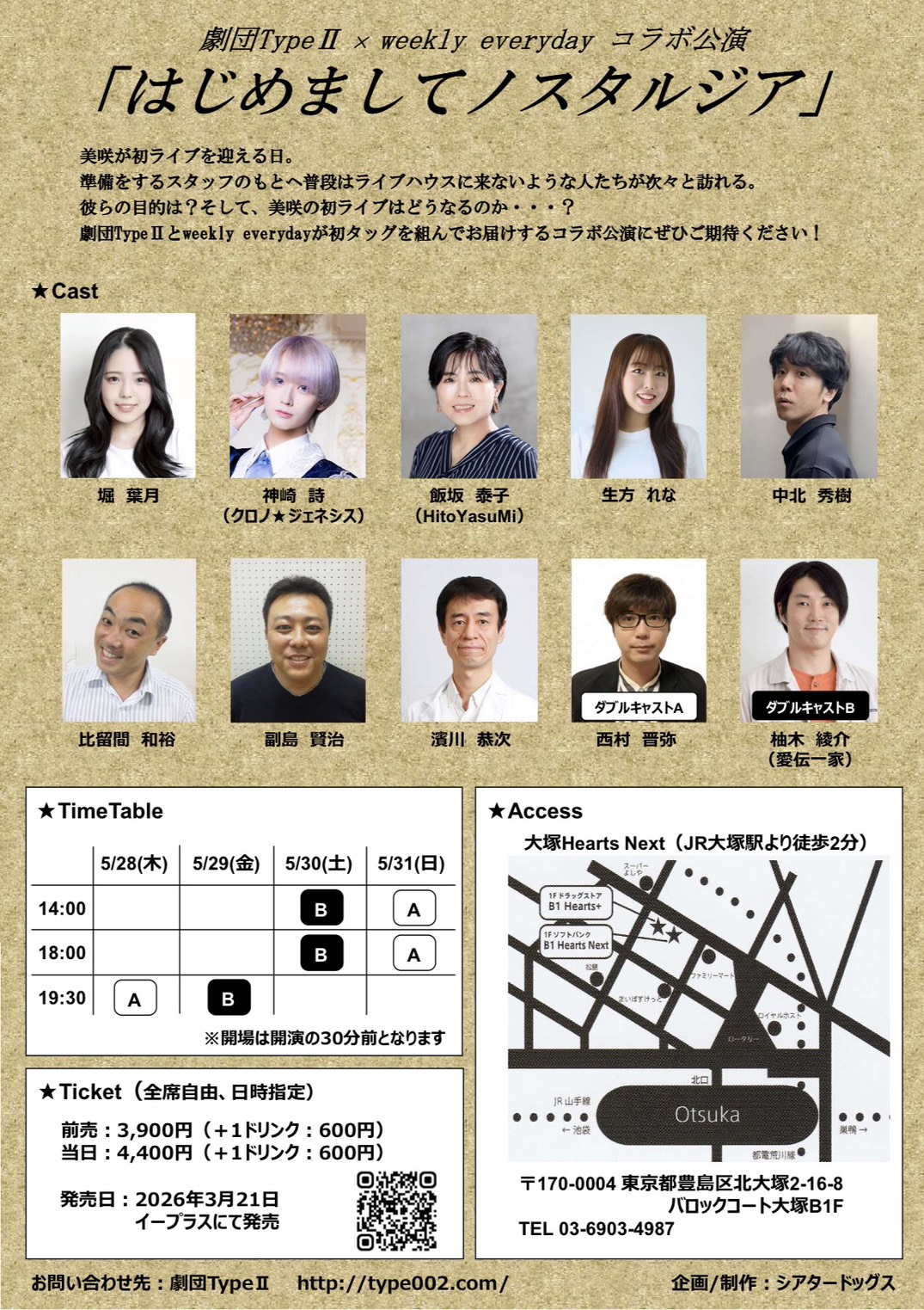 | 公演タイトル | 劇団TypeU× weekly everydayコラボ公演 『はじめましてノスタルジア』 |